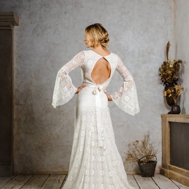 From British lace to organic bamboo, cotton, and ramie, every piece is made using considered, lower-impact materials, proving that beautiful bridalwear can also be planet-conscious.